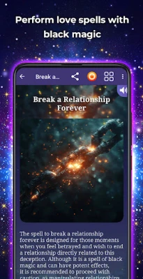 Atraskite platų geriausių juodosios magijos burtų rinkinį. Ši programa suteikia prieigą prie efektyvių burtų, parašytų anglų kalba. Visi burtai pasiekiami be interneto ryšio ir yra visiškai nemokami. Idealu norintiems išmokti ir praktikuoti juodąją magiją.