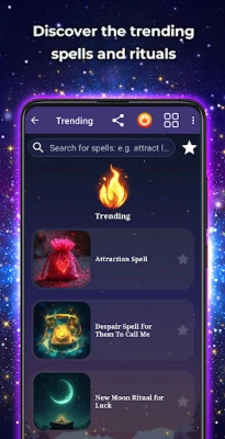 Mėgaukitės išsamiu ir lengvai suprantamu turiniu, kurio instrukcijos pateikiamos anglų kalba. Ši programa yra visiškai nemokama ir pasiekiama bet kada, net ir be interneto ryšio. Galėsite neribotai tyrinėti ritualus, išmokti atlikti burtus namų sąlygomis ir išsisaugoti mėgstamiausius, kad visada būtų po ranka. Intuityvus dizainas užtikrina sklandų naudojimą, o nuolatiniai atnaujinimai garantuoja, kad visada turėsite prieigą prie naujausių ir patikrintų magijos žinių. Kviečiame siųsti pasiūlymus ar pranešti apie klaidas el. paštu