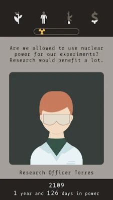 Pasinerkite į postapokaliptinį 2075 m. pasaulį. Piršto judesiu kairėn ar dešinėn valdykite tautos likimą, gelbėkite ją arba veskite į pražūtį. Priimkite sunkius sprendimus, spręskite karus, ligas ir nepaaiškinamas paslaptis. Kiekviena jūsų pasirinkimas formuos ateitį.