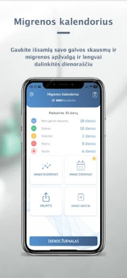 „Migrenos kalendorius" leidžia detaliai stebėti galvos skausmus ir migrenos epizodų eigą laikui bėgant. Gaukite išsamų savo būklės vaizdą, analizuokite tendencijas ir saugiai dalinkitės šia svarbia informacija su savo gydytoju efektyviam gydymui.