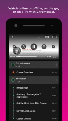 Tobulėkite savo tempu ir būdu, nesvarbu, kur esate. Pluralsight programa leidžia jums ugdyti įgūdžius kelyje, net ir neturint interneto ryšio. Atsisiųskite pamokas ir žiūrėkite jas neprisijungę, kai WiFi nepasiekiamas arba susiduriate su ryšio problemomis. Patogiai žymėkite kursus mobiliajame įrenginyje, kad prie jų sugrįžtumėte vėliau. Visi išsaugoti kursai ir jūsų mokymosi progresas sklandžiai sinchronizuojami tarp visų jūsų įrenginių, užtikrinant nepertraukiamą ir lanksčią mokymosi patirtį.