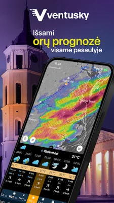 „Ventusky" atveria langą į gyvą, kvapą gniaužiančią atmosferos simfoniją. Užuot pateikus sausus skaičius, ši programa vizualizuoja vėją pulsuojančiomis srautinėmis linijomis, kurios realiuoju laiku atspindi nuolatinį orų judėjimą ir kaitą visame pasaulyje. Šis dinamiškas vaizdas leidžia ne tik stebėti orus, bet ir intuityviai suprasti sudėtingus atmosferos reiškinius bei jų tarpusavio ryšius. Su „Ventusky" orai tampa regimi, suprantami ir tiesiogiai jaučiami, padedantys geriau orientuotis aplinkoje ir planuoti savo dieną.